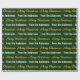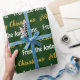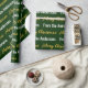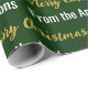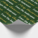 Los Navidades envuelven papel de color verde oscuro. Tiene un patrón de texto para un mensaje personalizado como Feliz Navidad y el nombre del donante. Feliz Navidad aparece en un elegante guión de oro falso (no de Relieve metalizado). El otro texto es blanco. Todo el texto se puede editar.