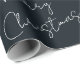 Papel de envoltura moderno de color liso. Un moderno bohemio rico negro con Feliz Navidad escrito a mano impreso en un patrón de repetición. Ricos Papel de envolvimiento de la Navidad de los Cerezos Negros.