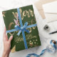 Feliz Navidad Estrellas Verdes y Faux Gold Elegant Script, Navidades elegantes papel de envolver regalo, añadir nombre o texto