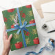 Navidades festivos personalizados diseño de papel envolvente de vacaciones con copos de nieve dorados de invierno y purpurina rojo Navidad presente y lazo rojo arco de lazo sobre un fondo de personalizable verde claro, personalizar este diseño agregando tu nombre de familia o texto navideño saludo y agregando tu foto familiar favorita. POR FAVOR NOTE que el oro no es metálico.