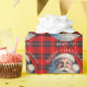 Feliz Navidad Santa Festive Red Tartan Plaid Winter Holiday Wrapping Paper Gift Wrap presenta a Santa Claus con rociadas de nieve con el texto "Feliz Navidad" con tu nombre personalizado debajo sobre un fondo escocés rojo. Perfecto para Navidades de vacaciones envolver para familia y amigos. Diseñado por © Evco Holidays www.zazzle.com/store/evcoholidays