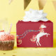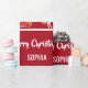 Envoltura de regalo para Navidades modernos para niños, con un unicornio tirando del trineo de Santa María; el saludo "Feliz Navidad" en una tipografía elegante; y un nombre personalizado. En un fondo rojo de Navidad.