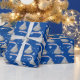 Besos de chocolate envueltos en Relieve metalizado plateado con Feliz Navidad y copos de nieve sobre fondo azul. Se puede cambiar el color de fondo.