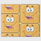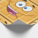 Un gofre feliz con una cara sonriente sobre él. Este diseño parece realmente efectivo en este papel de ajuste