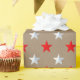 Papel de envoltura festivo para la temporada de Navidades con estrellas rojas y plateadas en un rústico fondo de papel kraft. Ideal para cualquier ocasión y hace un regalo impresionante.