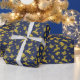 Add a touch of elegance and festive cheer to your holiday gifts with this stunning blue and gold Christmas wrapping paper. Featuring a charming pattern of leaping reindeer, Santa hats, bows, gift boxes, and stars, this design evokes the magic of the season. The rich navy blue background beautifully contrasts with the shimmering gold accents, creating a luxurious feel perfect for all your Christmas presents. This high-quality wrapping paper is ideal for family, friends, or anyone who appreciates a sophisticated holiday aesthetic. Make your gifts stand out under the tree with this beautifully designed festive wrapping paper.