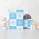 Los copos de nieve blancos y azules claros se alternan en los cuadrados azules y blancos de colores a cuadros para crear un diseño geométrico elegante perfecto para las vacaciones. Para ver el diseño original de otros elementos, pulse el enlace "Artes Rocklawn". Copyright ©Claire E. Skinner. Todos Los Derechos Reservados.
