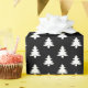 Un sencillo y minimalista patrón icónico de árbol de Navidad blanco y negro creado con una silueta de icono. El árbol se repite en filas de desvío para una impresión completa sin inconvenientes. Este patrón es una idea divertida para envolver regalos, artesanías de vacaciones, o para decorar tu casa para el fiesta de Navidades.