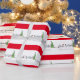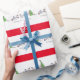¡Las vacaciones son para compartir! Hombres de nieve hechos a mano se reúnen para compartir historias y regalos en este papel de envoltura de vacaciones.