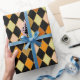 Papel De Regalo Festividad Naranja Retro Negro Patrón de diamante