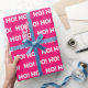 Patrón de "Ho Ho Ho Ho Ho Ho" en blanco sobre fondo rosa.