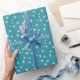 Este papel de envoltura festivo presenta un patrón estelar dibujado a mano verde azulada y blanca. Es perfecto para Navidades o regalos de Hanukkah.
