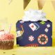 Disfruta de una fiesta de casino con tema de buena suerte con este patrón y diseño de Fiesta de Casino. Todos los íconos de juego, como fichas de póquer, cartas, dados y máquinas tragamonedas, además de más en un fondo azul marino.