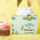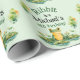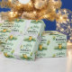Rana divertida verde en papel envolvente de lily pads cumpleaños, cambia el texto a lo que quieras cuando pidas