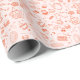 Papel de regalo de fiesta de té con estilo de garabato caprichoso, con pasteles, tazas de té y tetera