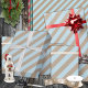 Un rústico papel de envoltura vacacional de color kraft con rayas anchas azul polvorientas en la diagonal.