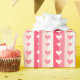 Filas de corazones en blanco, rosa y rojo, sobre rayas de los mismos colores. Un diseño muy lúdico que da la misma sensación de juego y alegría a tu día. Personalizar a su gusto.