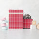 A highly textured, seamless plaid or check pattern set against a rich, solid ruby red background. The subtle grid is formed by extremely thin, closely spaced white or light pink lines, creating a dense weave appearance. This vibrant pattern is ideal for holiday themes, country cottage aesthetics, or classic fabric designs like flannel shirting.