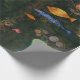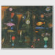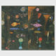 En Fish Magic, Paul Klee crea un reino mágico donde se entremezclan lo acuático, lo celeste y lo terrenal. Una delicada superficie negra cubre una capa inferior de colores, que el artista reveló al rascar y garabatear diseños en la pintura negra. En el centro del cuadro, una plaza de muselina está pegada a la tela. Una larga línea diagonal que llega a la parte superior de la torre del reloj se levanta como para quitarse esta sutil cortina.