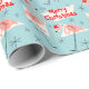 Papel De Regalo Flamingo Santas Blue Merry Navidad