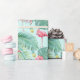 Este diseño de envoltura de regalo presenta un magnífico patrón de flamencos rodeados de abundante follaje tropical, flores de hibisco y piñas en el color de fondo de su elección. Este envoltorio de regalo también se coordina con nuestras invitaciones Sweet 16 y los suministros de fiesta enumerados en ID922. Busque ID926 para ver otros productos con este diseño colorido.