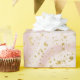 Modalidad de remolino de mármol rosa y blanco con papel envuelto en flecos de oro.