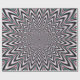 Una obra digital abstracta con un diseño geométrico ópticamente desafiante en rojo y blanco verde por el arte fractal de Objowl.