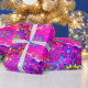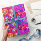 Papel de envoltura de flores abstractas bohemias. En colores azules, rosas, naranjas, verdes, azules, amarillos y morados.