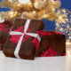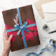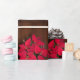 Hermosos Navidades rojos florecen sobre fondo marrón sobre papel envolvente. ¡Debes saber que tienes una foto!