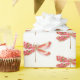 Dibujado artísticamente, dorado, libélula con joyas de color rojo y alas decoradas con rojo, floreciente, cerezo japonés con joyas sobre fondo blanco. Dragonfly de oro.