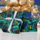 Papel De Regalo Flor virtual em azul gradiente, estilhaçada