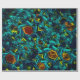 Desenho com fundo escuro semelhante a flores que foi submetida a diversos efeitos gráficos e ficou parecendo algo surreal que lembra de vidro de cor cor azul e de partes douradas e que foram parcialmente trituradas.
