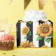 Flor de girasol sobre diseño de patrones de superficie de rayas negras y blancas. #sunflower #sunflowerstrips