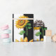 Flor de girasol sobre diseño de patrones de superficie de rayas negras y blancas. #sunflower #sunflowerstrips