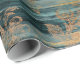 Un esténcil de esténcil de flores de oro en peligro de extinción, sobre un fondo de madera rústica azul/verde. Perfecto para el arte de la desconexión, artesanía de papel o envoltura de regalo. Por favor vea la vista previa de la imagen "seam" para asegurarse de que es aceptable.