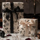Papel De Regalo Floral de Rosas y calaveras góticas blancas antigu