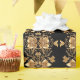 Hermoso papel de regalo floral ornamentado dorado negro