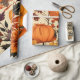 Este diseño otoñal vívido une los ricos tonos de calabazas naranjas y girasoles entrelazados con follaje dorado y marrón. Con un fondo de beige suave, los intrincados patrones florales y de hojas en púrpura profundo y verduras oscuras añaden profundidad y contraste. El acuerdo captura de manera maravillosa la esencia de una temporada de cosecha abundante, celebrando la calidez y belleza del otoño.