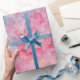 Papel envuelto con un campo de flores pálidas sobre un fondo azul claro. Se utiliza para envolver regalos, estantes de revestimiento y cajones o incluso artesanías.