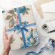 Papel De Regalo Flores azules antiguas Beige botánico floral