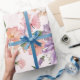Papel de regalo moderno y elegante con flores rosas y púrpuras, flores silvestres y mariposas de acuarela. Bonito y atractivo, este papel de regalo presenta flores silvestres pintadas con acuarela y un fondo floral con mariposas de acuarela en color suave rosa y púrpura, sin embargo moderno.