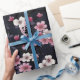 Papel De Regalo Flores de Sakura rosada negra, diseño de patrones,