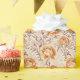Hermosos y exuberantes rosas dorados y naranjas con follaje de color sepia cubren este papel de envoltura. Rico y lujoso, con un toque del Viejo Mundo.