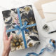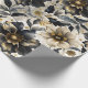 Patrón de flores elegantes y sofisticadas en negro y blanco con toques de dorado