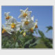 Paisaje rural con flores de patata blanca y cielo azul. La patata (Solanum tuberosum) se cultiva en todos los continentes. Las papas son el cultivo de tubérculos más ampliamente cultivado en el mundo. Las flores de solanum estrelladas blancas son decorativas. Fotografía paisajística