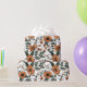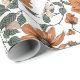 Flores marrones claros y hojas verdes en un patrón sin costuras sobre un fondo blanco.