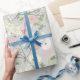 Papel De Regalo Flores Patrón Botánico Verde Rosa