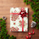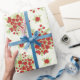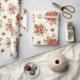 El patrón floral de flores rojas con hojas de color verde en un fondo claro aparece en los rollos de papel envolvente. Es lindo para duchas nupciales, cumpleaños, día de la madre y otras ocasiones y vacaciones de primavera o verano.