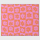 Esto es lindo groovy deformado flores retro de los años 70 en cuadrados de cuadros rosados y naranjas