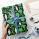 PAPEL DE REGALO FLORES VERDES ART DECO, PARROS BLANCOS EN NEGRO